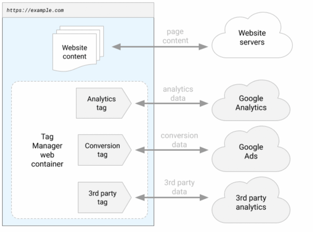 Per comprendere a fondo i vantaggi del monitoraggio lato server, è utile fare un passo indietro e analizzare il metodo attualmente più diffuso: il tracciamento client-side. Nel client-side tracking, i dati vengono raccolti tramite il browser dell’utente, attraverso tag e script JavaScript installati sul sito. Sistemi come Google Tag Manager vengono utilizzati per gestire e inviare le informazioni verso piattaforme come Google Analytics, Meta, TikTok, Mailchimp, ecc.